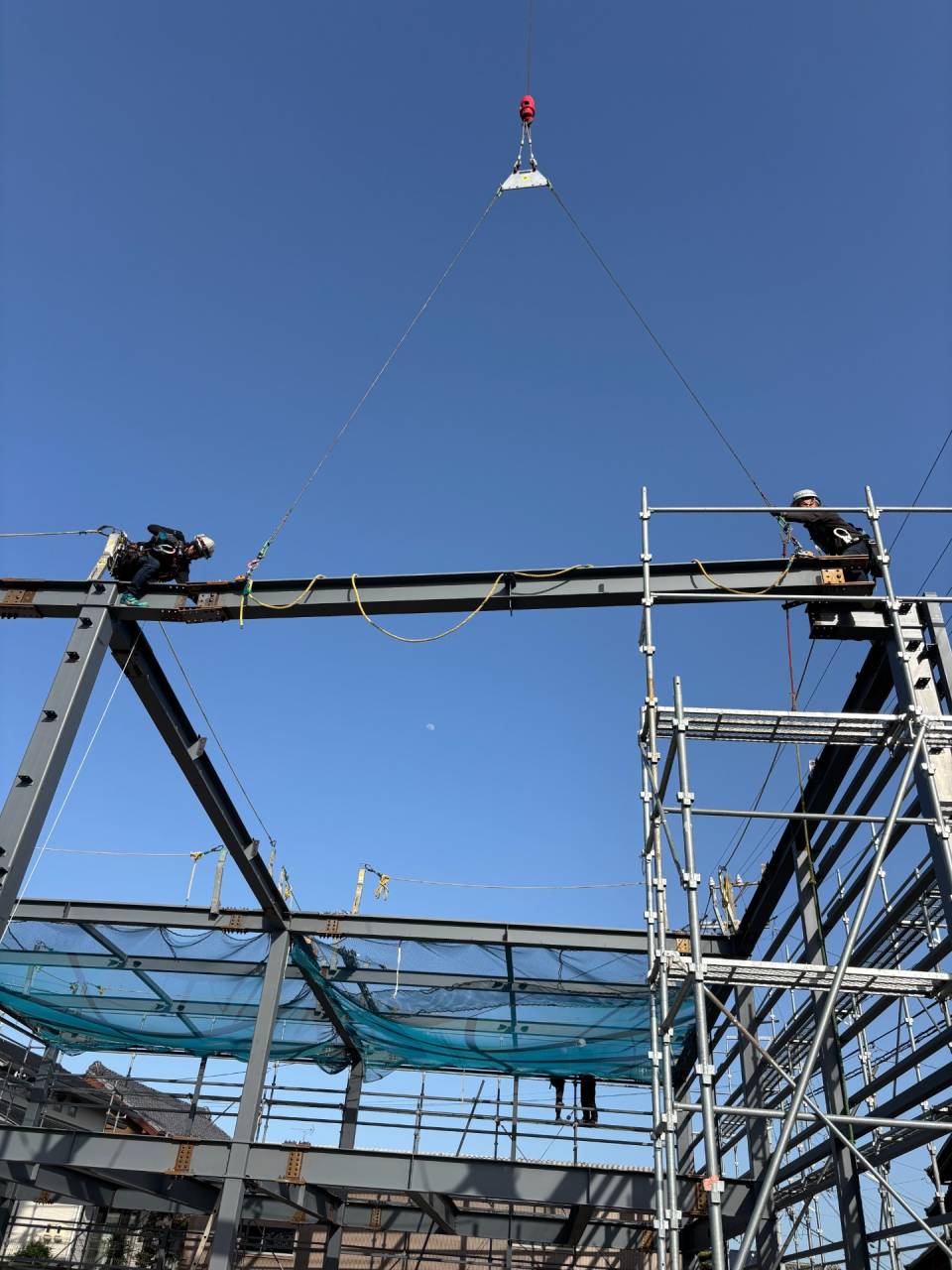 愛知県豊橋市で鉄骨組立を行っている豊川市の山真工業です! 2025/05/22 愛知県豊橋市K社様倉庫新築工事 鉄骨建方 この度は、山真工業のホームページをご覧いただきありがとうございます! 久しぶりの投稿になります! 今回の投稿は、愛知県豊橋市のK社様倉庫新築工事の鉄骨建方風景になります。 16tラフタークレーンを使用し鉄骨のピースを順序良く組立を行っています。 それでは皆さん、本日も一日ご安全に!