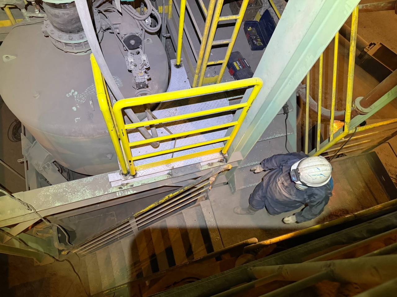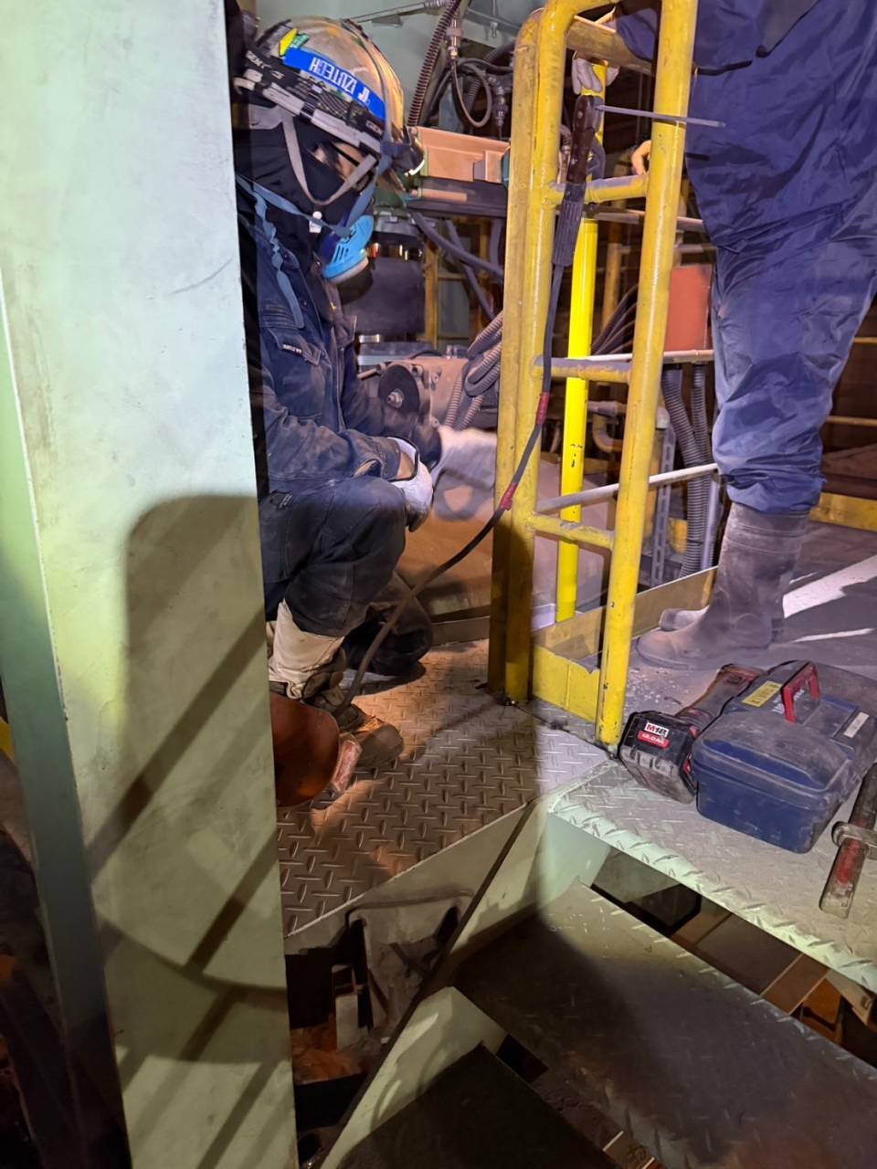 愛知県田原市のT社にてステージ増設・手摺り嵩上工事を行っている愛知県豊川市の山真工業です! 2025/12/05 点検ステージ取付 ステージ増設 いつも山真工業のホームページをご覧いただきありがとうございます! 今回の投稿は、愛知県田原市のT社にてステージ増設。・手摺り嵩上工事の風景になっております。 ステージと手摺りは事前に弊社で製作した物を用意して施工は行いました。 解体 手摺り撤去 ステージ増設の邪魔になる手摺りを撤去しています。 それでは皆さん本日も一日ご安全に!