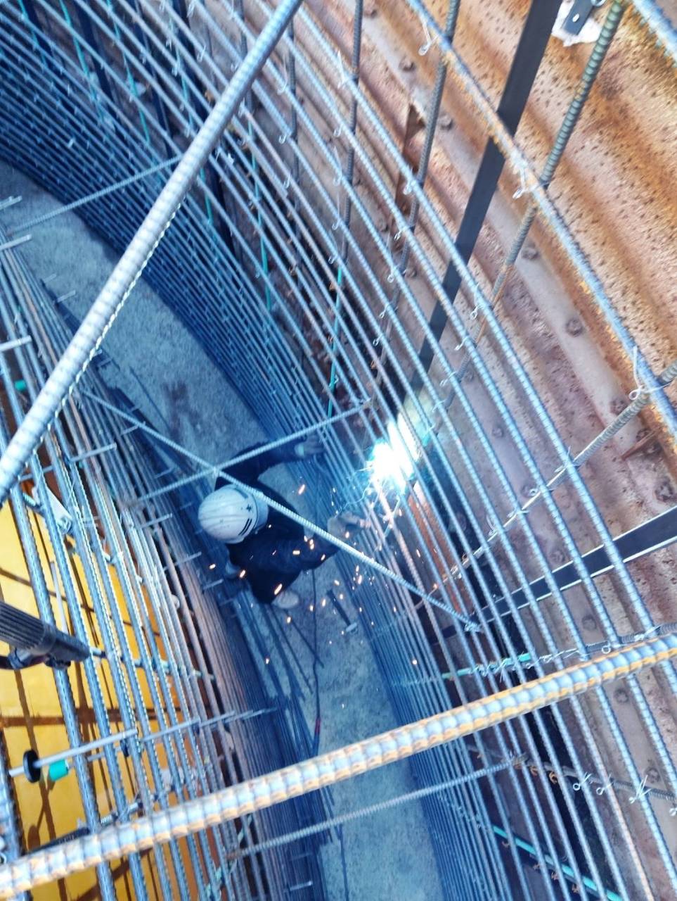 愛知県新城市のT施設にて鍛冶工事を行っている愛知県豊川市の山真工業です! 2025/12/10 型枠用アングル取付 溶接 いつも山真工業のホームページをご覧いただきありがとうございます! 今回の投稿は、愛知県新城市のT施設にて型枠を強固に組立する為にアングルL40*40*500を85本を 取付する工事なります! 狭い場所での溶接で、尚且つキャップタイヤが鉄筋に絡まるのでやり取りが面倒くさい感じですが頑張って 溶接しています。 それでは皆さん本日も一日ご安全に!